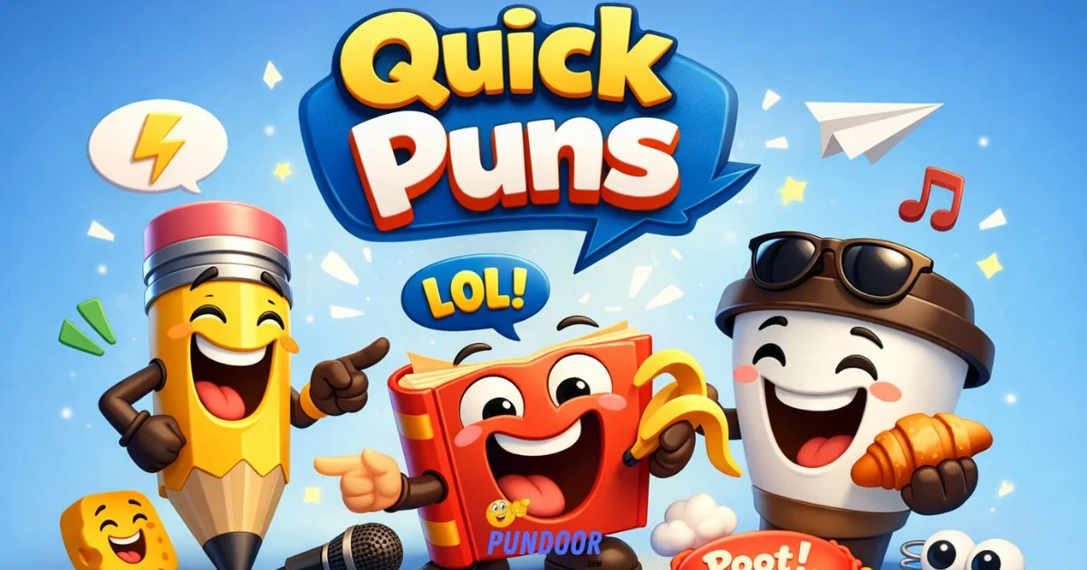 Looking for quick puns that instantly make people laugh? You’ve landed in the right place! Quick puns deliver sharp, playful humor in a flash, turning ordinary moments into unforgettable laughs. When you need a funny one-liner, a dirty or flirty joke, a cheesy pun, or a clever Instagram caption, these witty wordplays work perfectly for social media, texting, or sharing with friends. I personally love how a well-timed pun can break the ice, spark smiles, and make any conversation more fun.